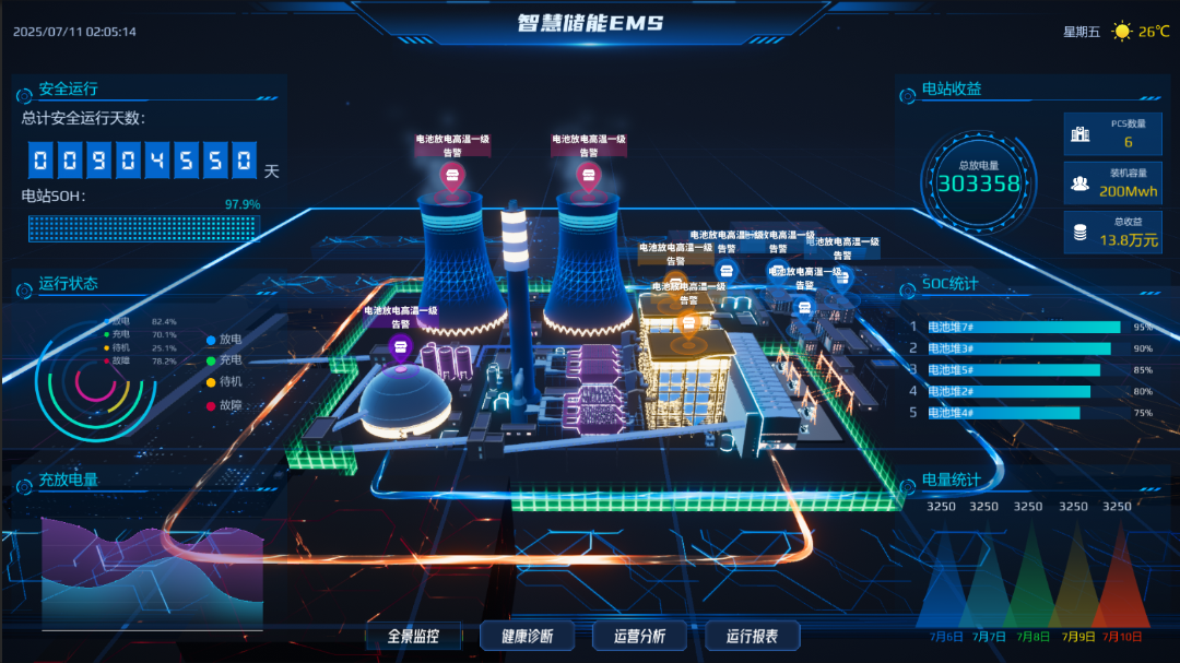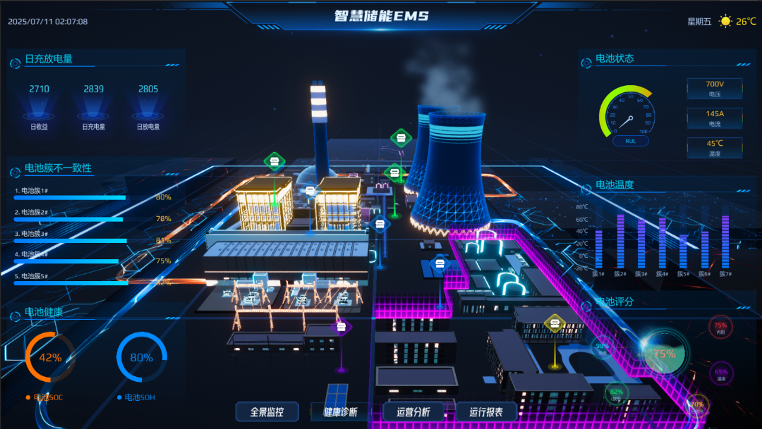 在新能源浪潮席卷全球的今天,储能系统成为稳定电力供应、推动能源转型的关键力量。而作为储能系统的 “智慧大脑”——能量管理系统(EMS),其设计早已突破传统工业软件的刻板印象,在精准控制、智能决策、场景适配等维度绽放出令人惊叹的创新力。南京中汇电气作为专注于新型电力系统保护和控制领域的佼佼者,所推出的储能 EMS 产品以六大技术亮点打破技术边界,成为创新标杆。 ![]() ![]() ![]() 功能描述:基于图谱建模技术构建储能系统内部的拓扑关系图(电芯↔电池簇↔电池堆↔PCS↔EMS↔并网点),在发生故障时,系统可自动追溯故障来源、定位故障链路、分析故障影响范围。 关键优势: ●实现“从症状到根因”的故障路径反演; ●可快速判断一个PCS故障是否关联特定电池簇或通信链路异常; ●支持图谱可视化,便于展示和交付; 技术基础:图神经网络(GNN)、Neo4j或RDF图数据库、规则引擎。 功能描述:通过实时汇集各PCS的充放电数据、变压器运行参数、并网点功率数据,系统可进行线损、变损、逆变器转换效率的动态统计与趋势分析。 关键优势: ●支持分时段损耗评估(如峰段线损是否高于谷段); ●可将日损耗/年损耗转化为经济损失,辅助企业节能优化; ●可识别异常能量路径(如某条支路异常放电或转换效率下降); 技术基础:能流分析 + 多源数据融合 + 电气测算模型。 电池健康评估与动态寿命预测 功能描述:实时跟踪电池SOC曲线、充放电频率、温度偏差等运行数据,结合电芯模型与退化趋势预测,生成SOH(健康状态)曲线与RUL(剩余寿命)预测报告。 关键优势: ●预警单体老化或容量退化; ●可用于维保计划制定与资产评估; ●与控制策略联动,动态调整最大充放电深度; 技术基础:电池老化模型 + 残差学习预测 + 数字孪生建模。 功能描述:集成负荷预测模型(如LSTM、XGBoost)与滑动窗口平均功率检测逻辑,实现15分钟内最大负荷削减的动态策略调度,同时可提供削峰收益评估与削减曲线图。 关键优势: ●提供需量电价节省估算、削峰“热力图”; ●支持预测误差自校准与多策略切换; ●可对接钢铁厂月度能耗目标,自动调整削峰强度; 技术基础:时间序列预测 + 滑动窗口算法 + 策略控制图。 功能描述:实时采集网购电功率,储能系统以“镜像方式”进行充放电调节,自动维持网购功率在设定目标附近(如10MW),用于缓冲冲击性负荷。 关键优势: ●具有秒级响应能力(可通过GOOSE协议直控PCS); ●减少煤气放散与电网反送问题,提升自发电利用率; ●可与慢控制器联动实现“快调+慢调”一体化发供电平衡; 技术基础:负反馈控制、比例积分控制(PI)、快速边缘决策逻辑。 运行策略仿真沙箱与智能调度推荐 功能描述:在控制系统中嵌入“策略沙箱”模块,支持用户对不同充放电策略、削峰阈值、预测精度等进行仿真测试,系统自动评估收益、风险与电池消耗。 关键优势: ●可视化呈现策略差异对收益与SOC的影响; ●支持“一键生成最优策略方案”; ●适合培训演示与系统试运行期间使用; 技术基础:仿真引擎 + 策略优化算法 + 多目标评估模型。 南京中汇电气用六大技术亮点证明,储能 EMS 的惊艳从不在于花哨的表象,而在于对能源效率的极致追求、对系统安全的绝对守护、对用户需求的深度洞察。当这些技术合力运转,储能系统不再是简单的电力容器,更成为能思考、会决策、可进化的能源智慧体。在新能源浪潮奔涌向前的今天,这样的设计不仅定义着当下储能技术的高度,更预示着未来能源管理的无限可能 —— 原来储能 EMS 的惊艳,早已写在了重塑能源格局的每一个创新细节里。 ![]() ![]() ![]() ![]() ![]() ![]() ![]() ![]() |