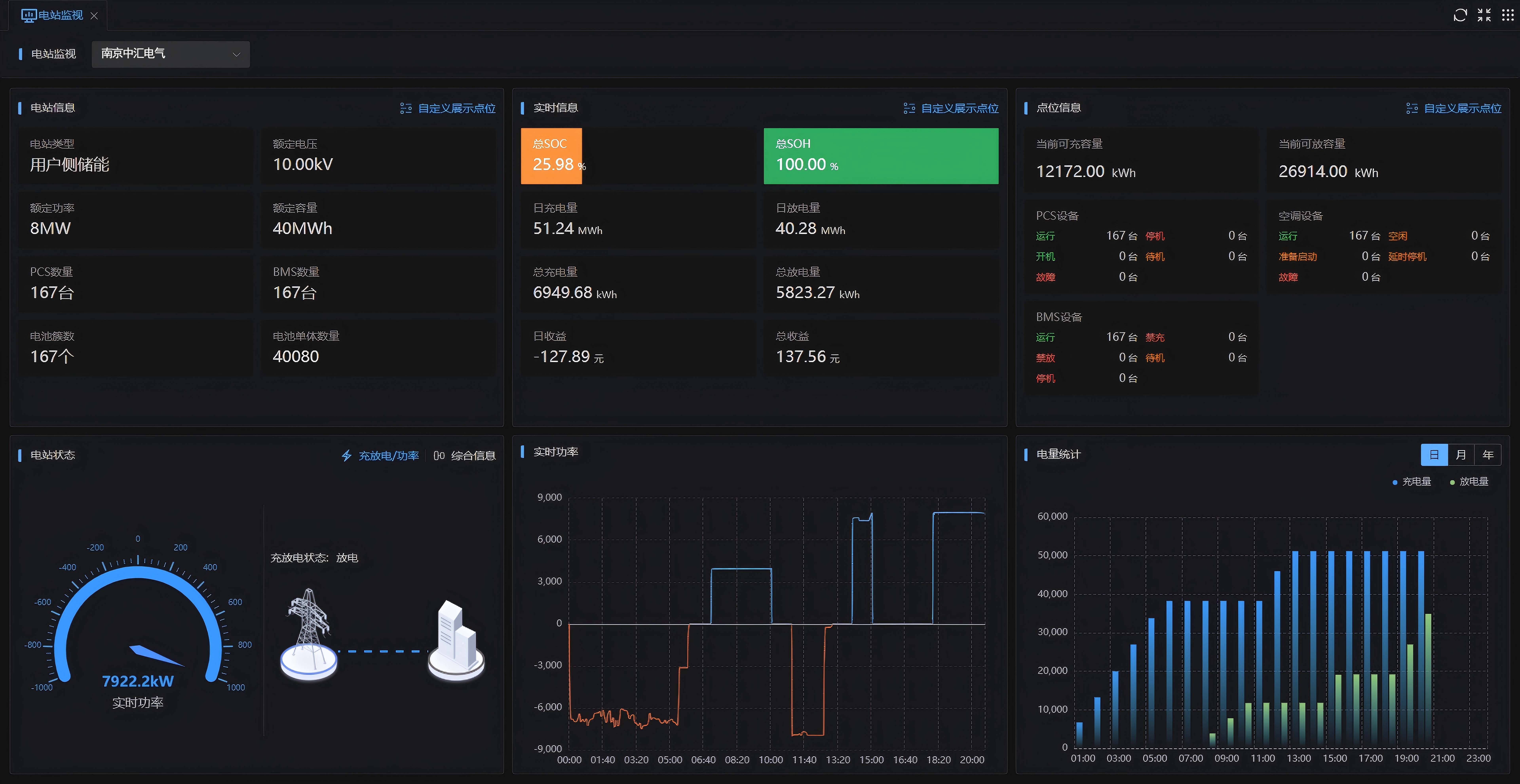 近日,多地连续高温,电网负荷创下历史新高,在江苏徐州一座200MW/400MWh的储能电站内,能量管理系统(EMS)正在默默值守。大屏上实时跳动的数据,记录着它在毫秒间做出的无数次决策——调控充放电功率、平滑新能源波动、响应电网调频需求。 ![]() 作为当时江苏省最大规模的储能电站,这仅仅是南京中汇电气服务的众多项目之一。截至目前,南京中汇电气储能EMS系统已管理超30GWh的投运场站,在用户侧储能、光伏/风电配储、电网侧储能等领域形成全覆盖解决方案。 ![]() 近年来,随着我国电网运营面临用电负荷持续增加、间歇式能源接入占比扩大、调峰手段有限等诸多困难,储能技术尤其是调峰电源得到了空前发展。 2024年,“发展新型储能”首次被写入政府工作报告。早在2018年,南京中汇电气便立项开发一套软件,对储能电站BMS和PCS集中监控,统一操作、维护、检修和管理,实现故障的快速切除、在负荷高峰时缓解电网压力、快速平滑控制有功功率,抑制电压大幅度波动。 ![]() ![]() 该套软件应用于新能源储能电站能量管理及储能系统功率控制技术领域,通过能量管理控制策略,合理地安排分配各PCS、电池组以及其他可控制设备,使得储能电站的整体性能以及暂态性能得到控制、改善和提升,同时控制各个变流器及电池组的充放电特性状态达到均衡。 ![]() 今夏以来,持续高温天气让电网负荷频频触及天花板。2025年8月20日12时35分,江苏电网最高用电负荷今夏第四次突破历史极值,达到1.55亿千瓦,较去年最高值同比增长5.99%。与此同时,新能源发电的不稳定性在极端天气下被进一步放大。南京中汇电气基于十余年新能源电力二次设备开发经验,研发出储能能量管理系统,该系统是专门针对储能电站开发的新一代监控管理平台,采用“平台+应用”的分层架构设计,具备强大的跨平台特性,可运行于Windows、Linux、Unix及国产操作系统。 ![]() 🔼分层架构协调控制器系统示意图 此外,南京中汇电气能量管理系统以储能EMS软件为核心,配套直供一次调频装置、功率控制装置、规约转换装置、微网协调装置、协调控制器、频率电压紧急保护装置、防孤岛保护装置等一系列硬件支撑装置,提供精准的解决方案。 ![]() 图谱驱动的多层级故障诊断与跟踪技术 基于图谱建模技术构建储能系统内部的拓扑关系图(电芯↔电池簇↔电池堆↔PCS↔EMS↔并网点),在发生故障时,系统可自动追溯故障来源、定位故障链路、分析故障影响范围。 关键优势:实现“从症状到根因”的故障路径反演;可快速判断一个PCS故障是否关联特定电池簇或通信链路异常;支持图谱可视化,便于展示和交付。 多维损耗计算与动态效率分析 通过实时汇集各PCS的充放电数据、变压器运行参数、并网点功率数据,系统可进行线损、变损、逆变器转换效率的动态统计与趋势分析。 关键优势:支持分时段损耗评估(如峰段线损是否高于谷段);可将日损耗/年损耗转化为经济损失,辅助企业节能优化;可识别异常能量路径(如某条支路异常放电或转换效率下降)。 电池健康评估与动态寿命预测 实时跟踪电池SOC曲线、充放电频率、温度偏差等运行数据,结合电芯模型与退化趋势预测,生成SOH(健康状态)曲线与RUL(剩余寿命)预测报告。 关键优势:预警单体老化或容量退化;可用于维保计划制定与资产评估;与控制策略联动,动态调整最大充放电深度。 智能需量控制与削峰调度模块 集成负荷预测模型(如LSTM、XGBoost)与滑动窗口平均功率检测逻辑,实现15分钟内最大负荷削减的动态策略调度,同时可提供削峰收益评估与削减曲线图。 关键优势:提供需量电价节省估算、削峰“热力图”;支持预测误差自校准与多策略切换;可对接钢铁厂月度能耗目标,自动调整削峰强度。 图谱驱动的多层级故障诊断与跟踪技术 实时采集网购电功率,储能系统以“镜像方式”进行充放电调节,自动维持网购功率在设定目标附近(如10MW),用于缓冲冲击性负荷。 关键优势:具有毫秒级响应能力(可通过GOOSE协议直控PCS);减少煤气放散与电网反送问题,提升自发电利用率;可与慢控制器联动实现“快调+慢调”一体化发供电平衡。 品质创造未来,创新改变世界。随着新型电力系统建设的深入推进,储能EMS系统将成为能源转型中的关键基础设施,南京中汇电气的企业思想正在转化为保障电网安全的实际行动,为构建清洁低碳、安全高效的能源体系提供重要支撑。 |