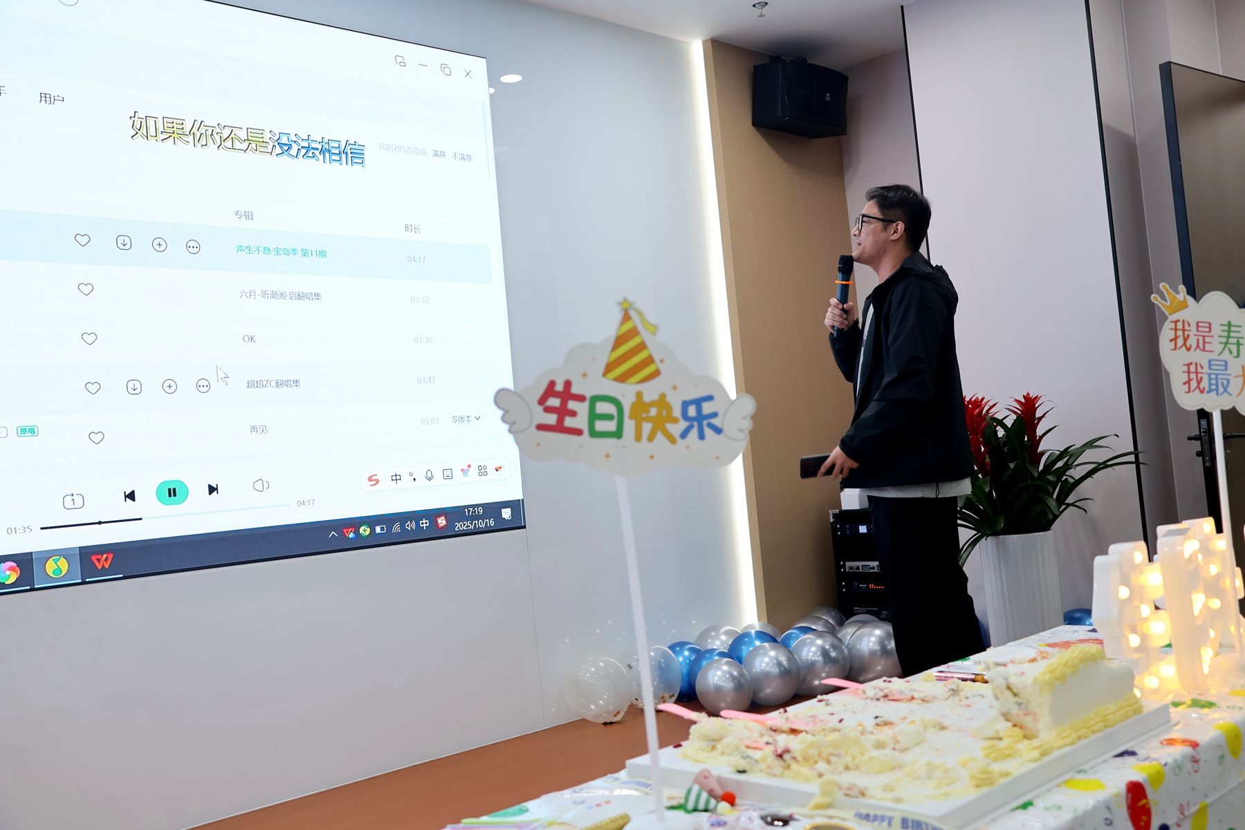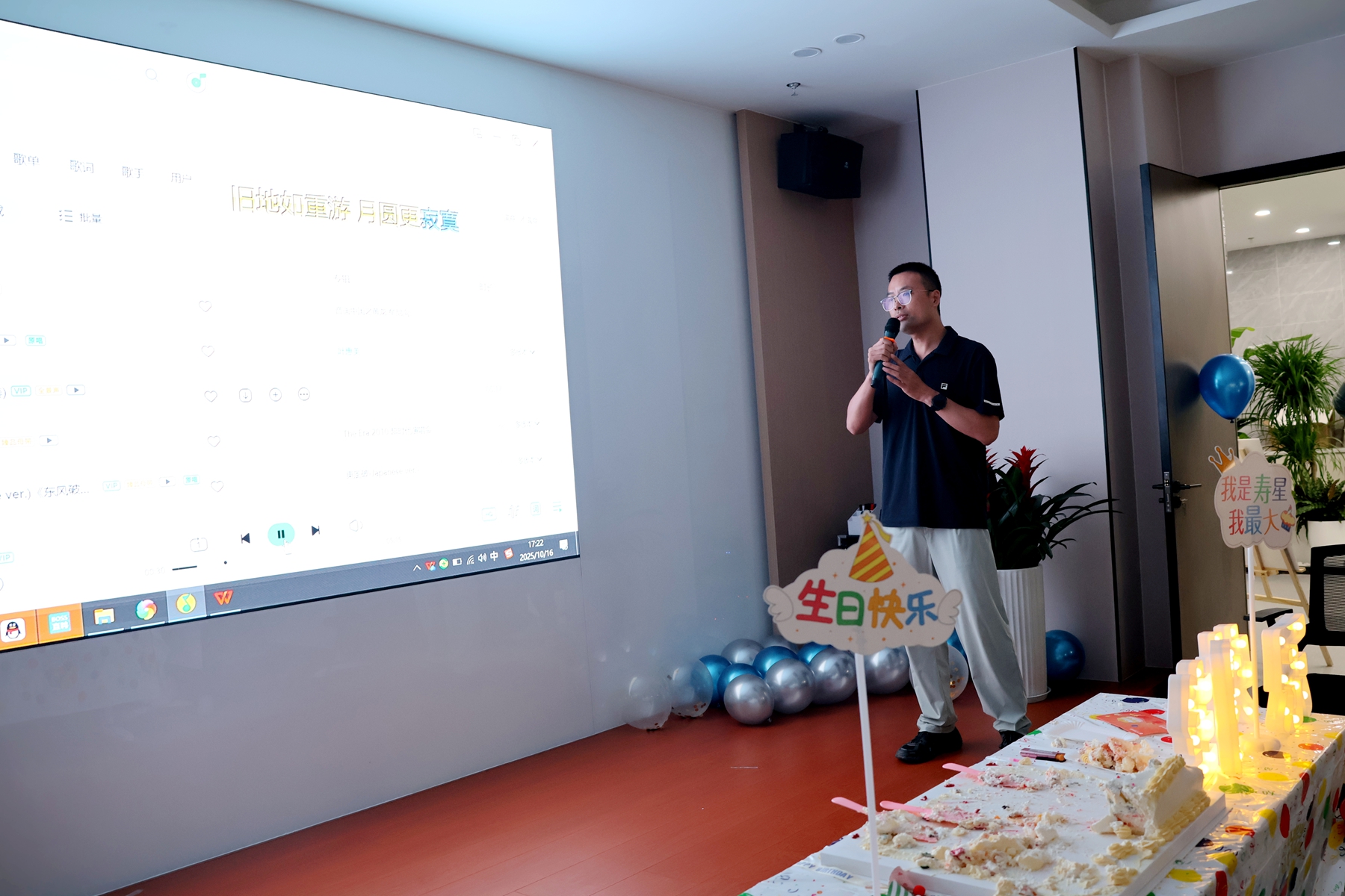 互动游戏更是将现场气氛推向高潮 来自各部门的7位寿星 现场学习并挑战一支网络舞蹈 充满活力的表演引得全场爆笑连连 最终现场选出了本次的“最佳舞者”! 现场即兴加唱 《女儿情》《小宇》《东风破》轮番上演 灯光与掌声交织 点燃了在场所有人的热情