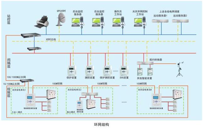 储能技术是构建能源互联网,促进能源新业态发展的核心基础,未来三大新兴产业——新能源并网、智能电网、电动汽车的发展瓶颈都指向储能技术,市场潜力巨大。 RE-7000储能发电综自系统以变电站监控系统为基础平台,并根据光伏电站特点专门开发,实现对光伏电站内的光伏阵列、汇流箱、逆变器、箱式变压器、升压站、环境监测等系统的全面实时的监测和控制,并为用户展现丰富的用户界面,提供强大的分析处理功能和完善的监测报警机制。功率控制系统可作为高级应用与光伏电站监控系统一体化部署和配置,在提高光伏电站并网可靠性、安全性的同时,大大简化系统架构,降低工程造价。 储能电站监控系统采用三层架构:现地层、间隔层和站控层,现地层设备分散布置在光伏电站各个逆变器小室内,站控层和间隔层设备布置在监控系统主控制楼内的计算机室及主控制室内。以每个逆变器小室为一个发电单元,最新研制的光伏发电单元三合一测控装置可代替传统的箱变测控装置、规约转换器及交换机,具备保护测控、规约转换、数据传输三合一功能,全面实现对箱式变压器、逆变器、汇流箱及发电单元内其它监测装置的监视和控制。同时,发电单元之间通过光纤环网连接,并通过10/100/1000M 以太网上送数据到站控层监控系统。按一体化设计和实现的保护测控装置及结构紧凑的环网网络结构或星形网络结构,使得对发电单元的监控架构更简化,性能更可靠,性价比更高。 产品特点 ◆ 按一体化设计和实现的保护测控装置及结构紧凑的环网网络结构或星形网络结构,使得对发电单元的监控网络更简化,性能更可靠,性价比更高; ◆ 全站采用统一数据采集和处理平台,实现升压站区与光伏区数据的无缝集成,全站数据共享,为光伏电站里的光伏阵列、汇流箱、逆变器、箱变、升压站、环境监测等设备提供统一的、全面的实时监测和控制; ◆ 通过对逆变器、汇流箱、光伏组件运行状态的实时监视和故障分析,及时发现和定位发电设备的故障,便于用户快速检修并排除故障,提高发电效率,保障用户的经济效益; ◆ 可集成实现光功率预测、光伏并网控制等高级应用,简化系统架构,降低建设成本,实现数据充分共享和利用,使光伏电站运行更加经济与高效; ◆ 采用分布式数据库架构,实时大容量数据库等关键技术,支持海量数据的接入和处理,符合光伏电站设备数量多,数据量大的特点; ◆ 全站软硬件产品均支持各种国际标准,符合未来发展方向。 产品配置 ◆RE-7000 储能发电综自系统监控软件 ◆RE-701 数字式线路保护测控装置 ◆RE-702 数字式变压器保护测控装置 ◆RE-703 数字式电容器保护测控装置 ◆RE-706 数字式TV监测及电压并列装置 ◆RE-731 数字式频率电压紧急控制装置 ◆RE-760 通信服务器 ◆RE-761 规约转换器 ◆RE-781 母线保护装置 ◆RE-782 故障录波装置 …… 网络结构图 ![]() ![]() |